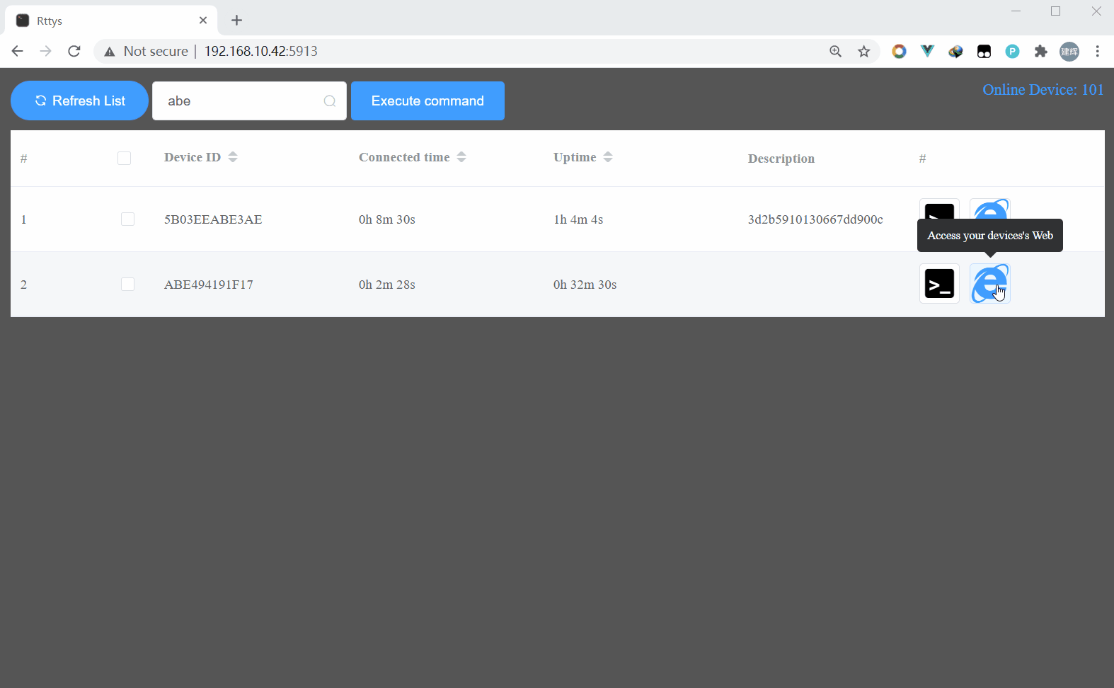 You can access your device's terminal from anywhere via the web. Distinguish your different device by device ID.